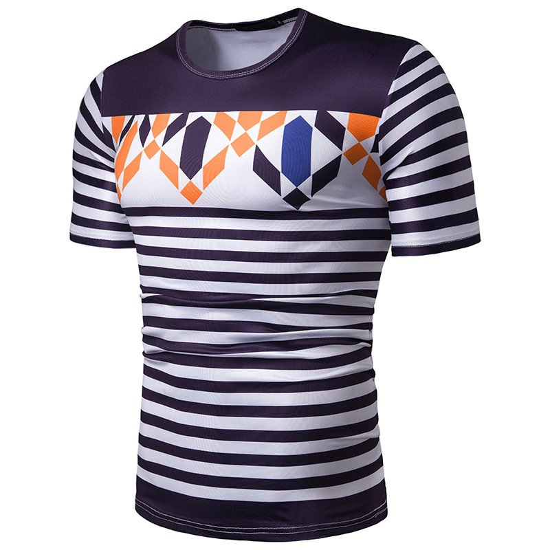 New summer men's short-sleeved T-shirt men's contrast striped slim casual t-shirt TX102