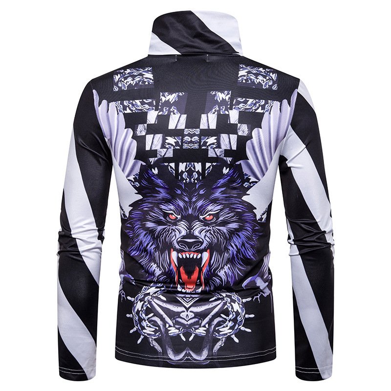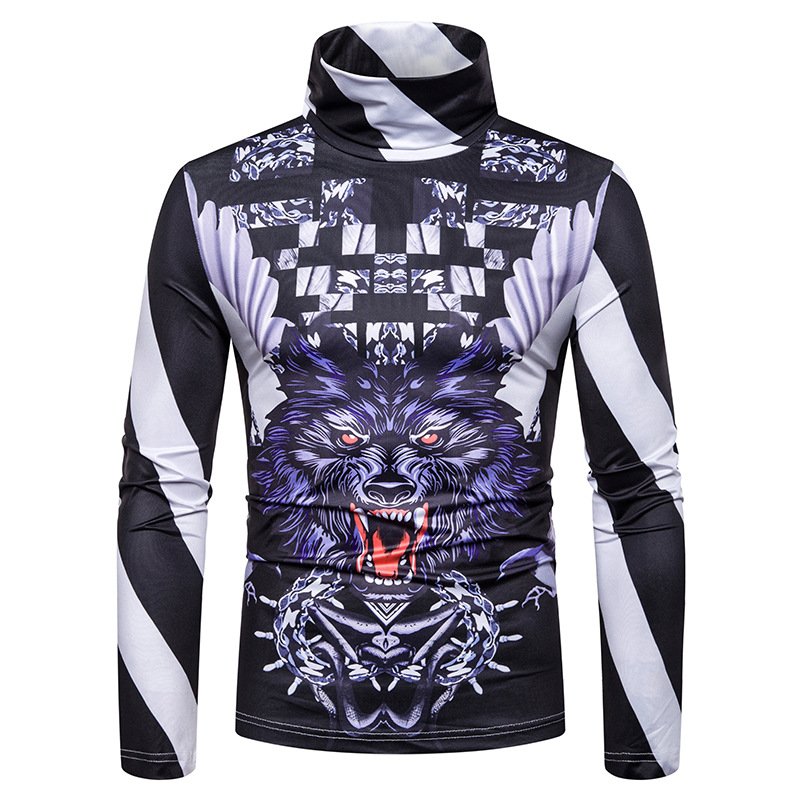 New men's large size 3D cheetah stripe print high neck long sleeve T-shirt bottoming shirt L14
