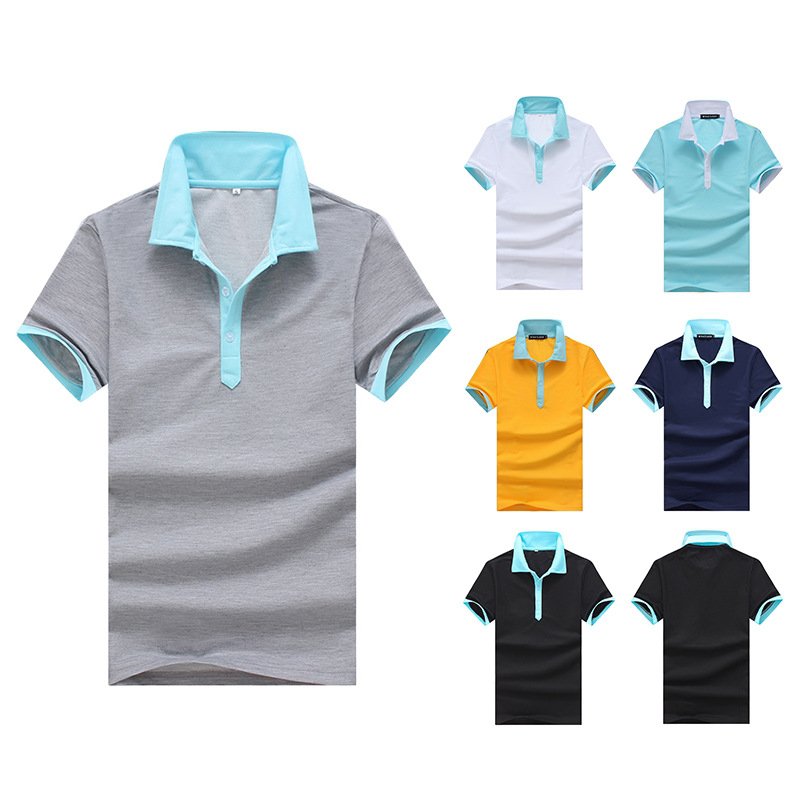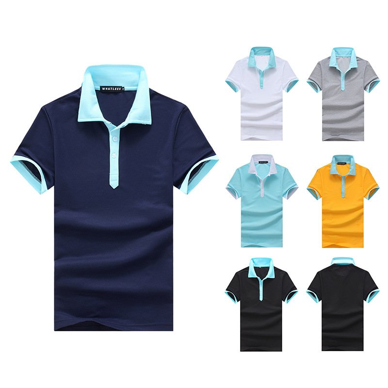 2021 summer new product WHATLEES foreign trade men's personality contrast color lapel short-sleeved T-shirt B45