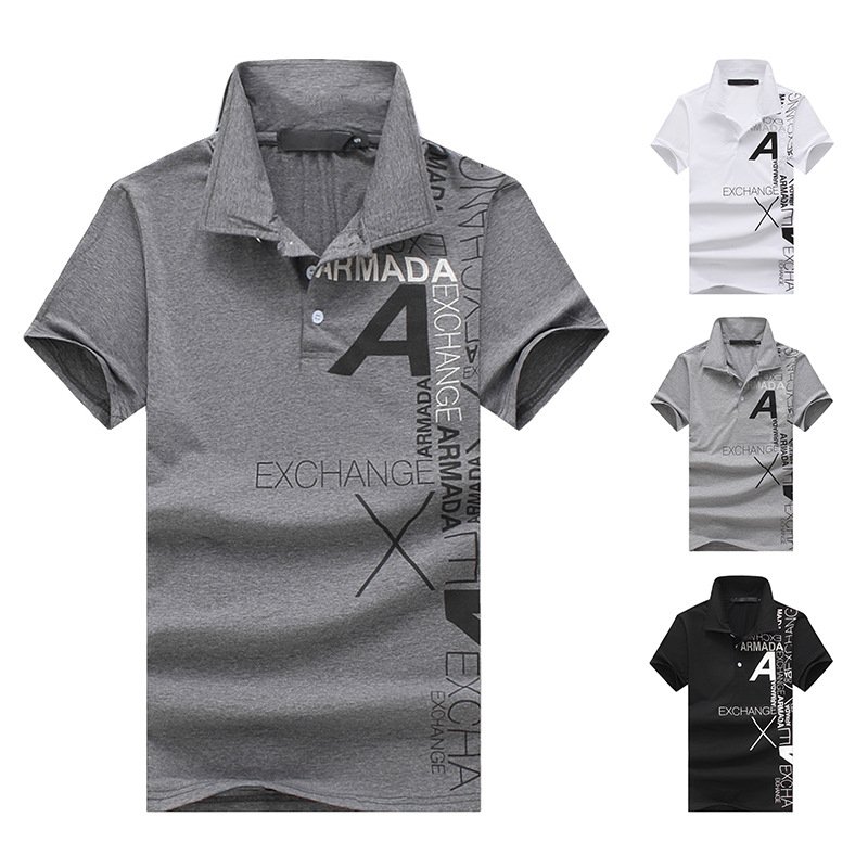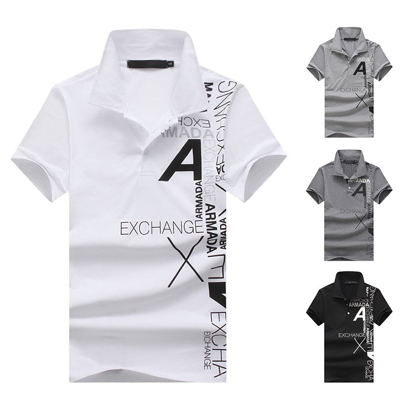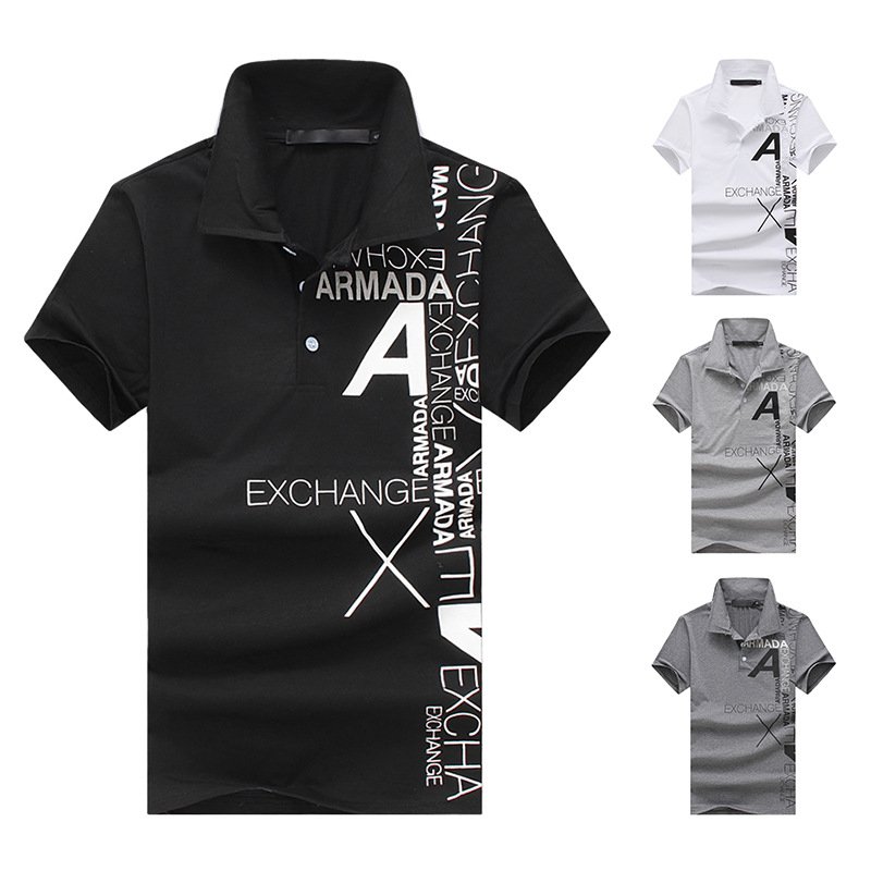 2021 flat foreign trade new men's style A letter printing lapel short-sleeved large size T-shirt B72